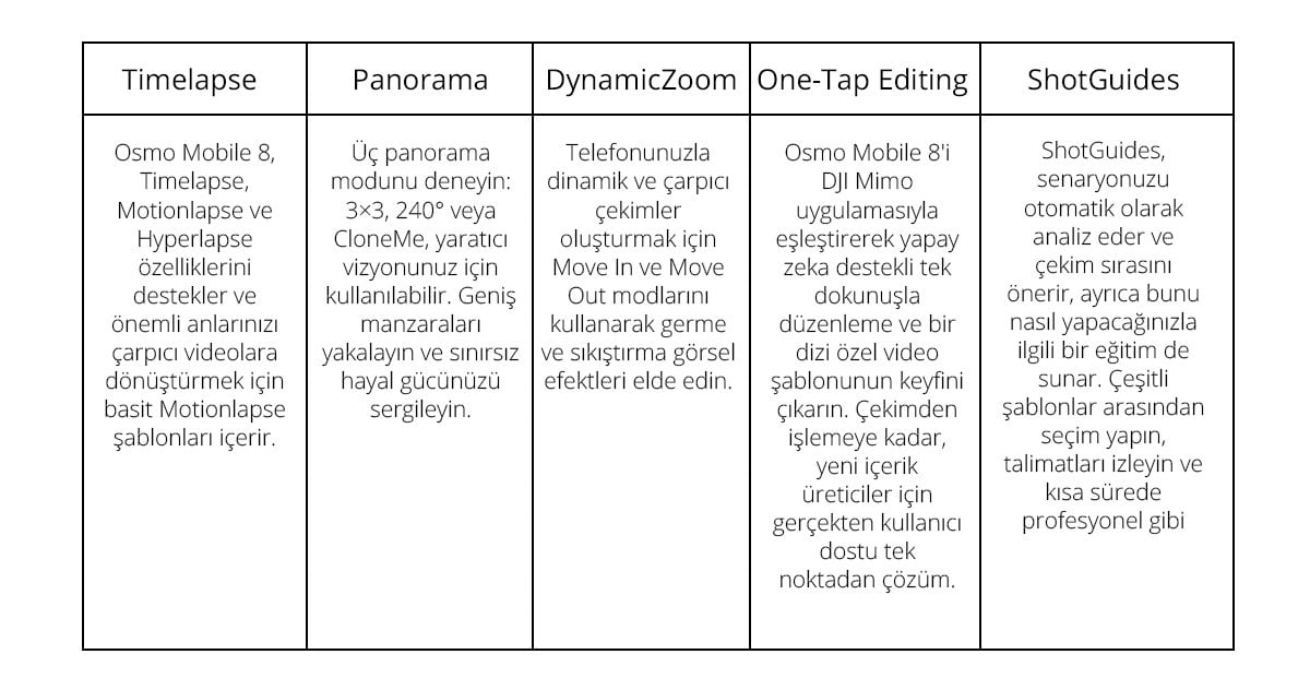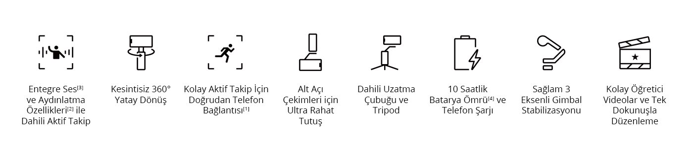 Gimbal ile birlikte kullanılan bu aksesuarlar, akıllı izleme, ses alımı ve aydınlatma özelliklerini mümkün kılar.