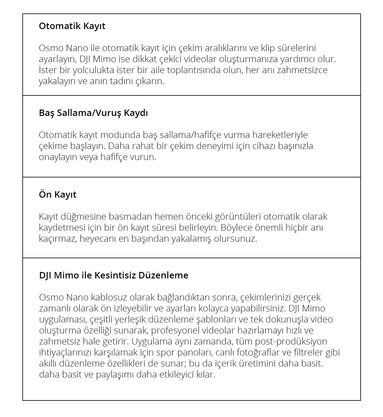 Bisiklet sürüşlerinden koşulara, büyük maceralardan günlük anlara kadar Osmo Nano, her anıyı canlandıran net ve canlı görüntüler sunar.