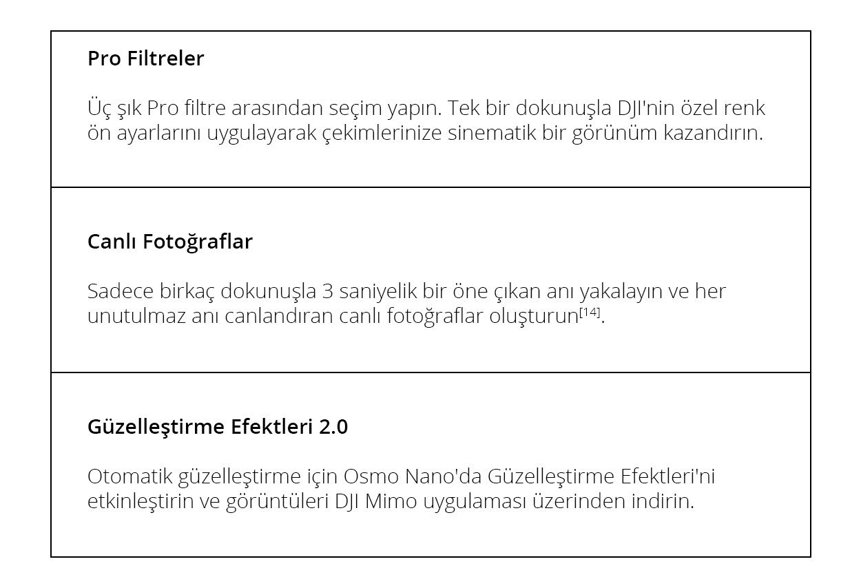 1/1.3 inçlik bir sensör ve yüksek performanslı bir görüntü işlemcisiyle donatılan Osmo Nano,